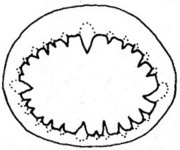 Figure. Oral view of inner ring of largest club sucker of S. oualaniensis. Drawing from Roeleveld (1988).