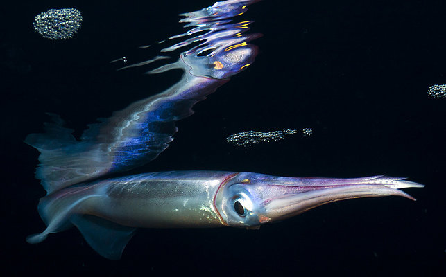 Members of Sthenoteuthis are the dominant ommastrephid squids in tropical waters of the world's oceans and are commonly seen at the ocean's surface at night. They range in size from ca. 100 mm ML to 650 mm ML.Brief diagnosis: