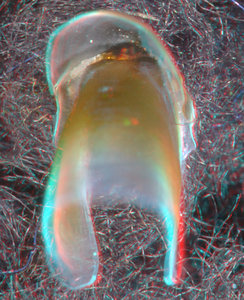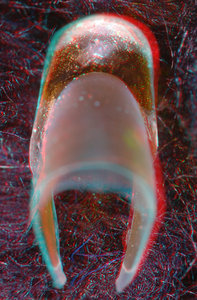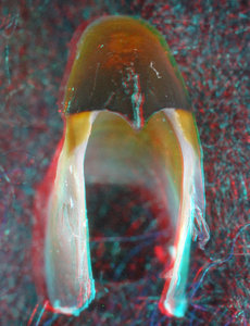 About anaglyph 3D: Photographs here are in 3D, using anaglyph techniques which combines two photographs one in red and the other in cyan (blue + green) color. To get the 3D effect, you must use glasses with red and cyan lenses (filters) over your regular glasses. The form of the beak is far easier to interpret in 3D and we strongly recommend to the viewer that the glasses be obtained (this is especially helpful when viewing enlarged images - i.e. click on the image). These beak photographs were made using Red and Cyan Anachrome Aviator Glasses (see: http://www.anachrome.com/glassbuy.htm or http://www.amazon.com) which cost under $10.00 (USD).
